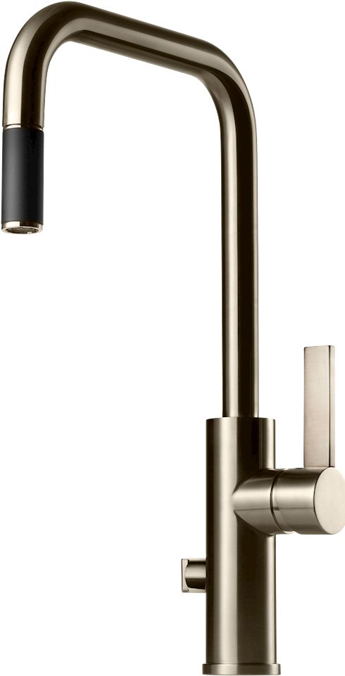 Kjøkkenbatteri med uttrekkbar hånddusj og avstengning for oppvaskmaskin.