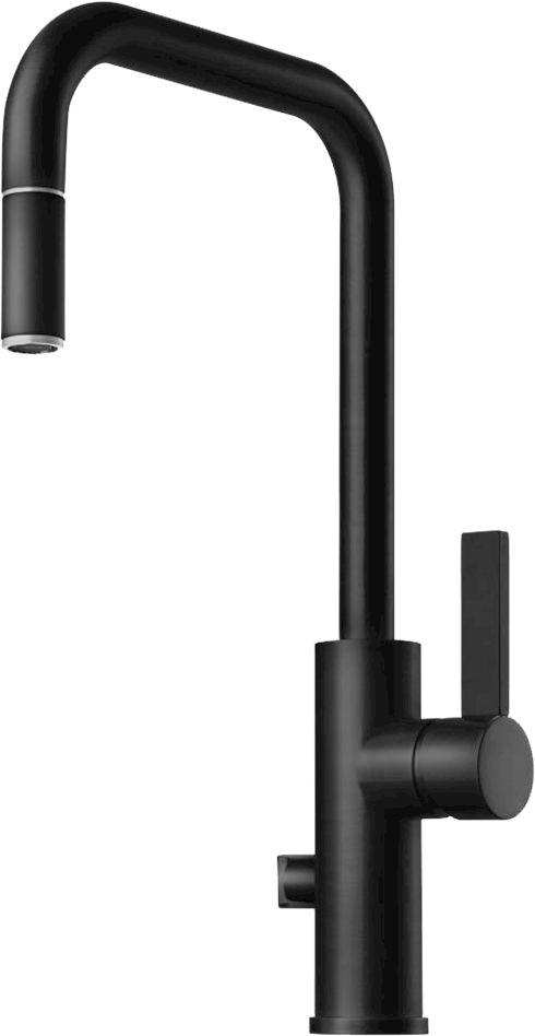 Kjøkkenbatteri med uttrekk og avstengning for oppvaskmaskin.