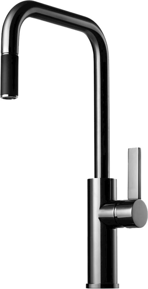 Kjøkkenbatteri med uttrekkbar hånddusj.