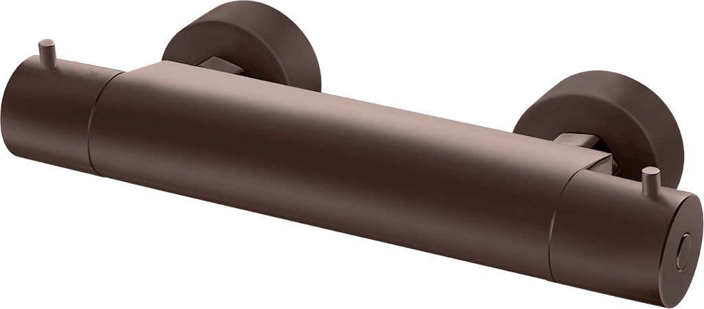 Trykk- og termostatstyrt dusjbatteri med utløp ned.