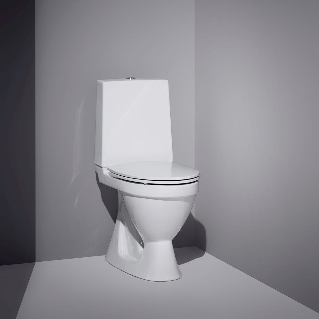 Gulvstående toalett med skjult S-lås, med spylekant, hvit.