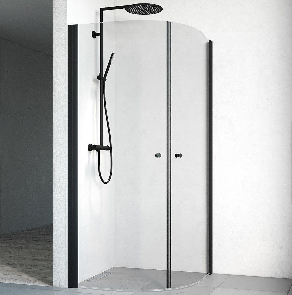 Et eksklusivt dusjhjørne hvor dørene kan felles både inn og ut. H:197 cm, B:90 cm, D:90 cm
